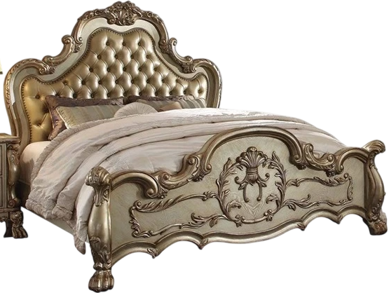 A new rendition of the classic Dresden, finished in gold patina, with a hint of gold. The antiqued look is further highlighted with a hand-applied burnish. The bed is complemented by a thick, tufted upholstery surrounded with individual Nailheads, in matching leather like PU.Read More