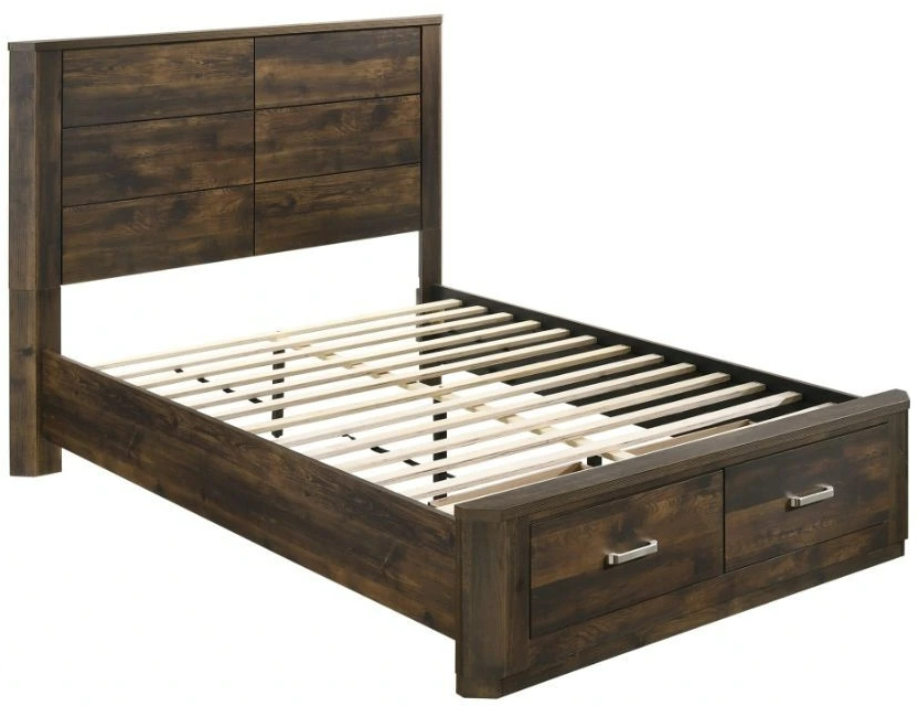 The simple lines and walnut wood tones create a sooth-full aesthetic with this plank influenced bedroom set. Practical design features include easy-grasp pulls that accentuate the collection with a polished finish. This bed provides ample storage with drawers that hide seamlessly within the footboard.Read More
