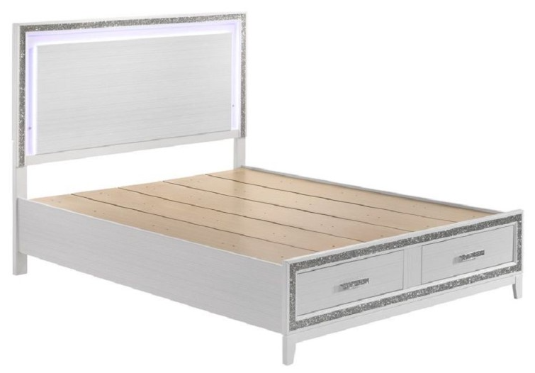Classic design with touches of modern aspects makes this Haiden collection ideal for any bedroom. The bed adds function and design with its storage footboard and its LED-lighted headboard. The collection features a glamorous shimmering silver accent trim that adds richness to each piece.Read More
