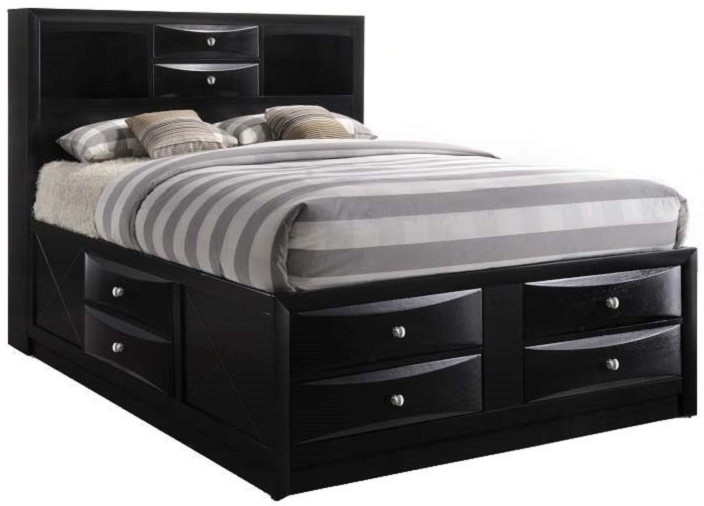 8 Drawers: Headboard with 2 drawer, side rail with 1drawer each side, footboard with 4 drawer