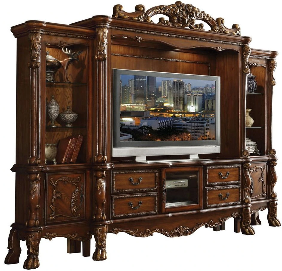 Dazzling details abound in the Picardy entertainment center! Intricate raised scrolled molding and Queen Anne legs adorn each piece of this stunning set, including two side piers with beveled glass doors and touch light function, and a TV stand that accommodates up to a 75-inch flat panel TV.Read More