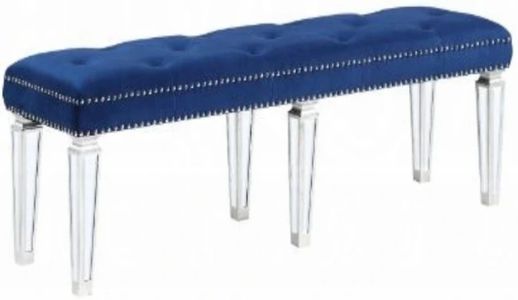 The ACME Furniture Varian accent bench adds a touch of elegance with its plush velvet upholstery in a rich blue hue. Featuring button-tufted detailing, clear acrylic legs, and silver nailhead trim, this versatile bench brings luxury and charm to entryways, bedrooms, or living spaces.Read More