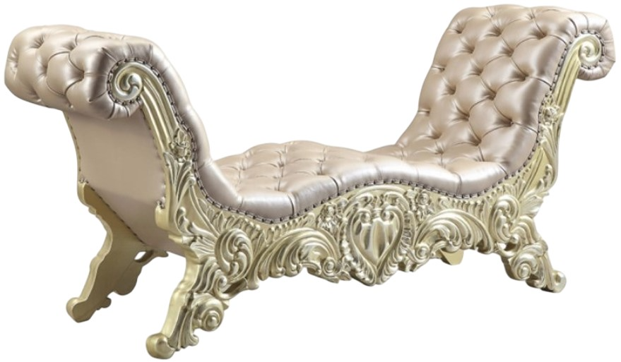 The Vatican Bedroom Collection employs a sense of timeless style in each piece, from button-tufted upholstery, and scrolled floral accents to detailed design. The Champagne gold tone lends a sleek finishing touch to matching case goods. The Vatican Collection will infuse your bedroom with glitter and endless luxury.Read More