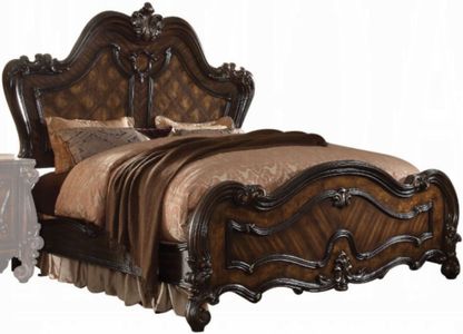 Sleeping like royalty with this Versailles, the bedroom set was inspired by old European design. This collection features carved scrollwork accent on headboard. The accent pieces crafted in wood with cherry oak finish and also included regal features such as ample storage, beveled mirror, and brown copper finish hardware.Read More