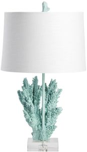 The Crestview Collection Coral Table Lamp invites your senses on a sea journey and delights the eyes with its sea blue coral fingers extending up toward the lamp shade in cool white. This coastal style lamp makes its space feel cooler, almost breezy, while the clear glass base frames the coral perfectly.Read More