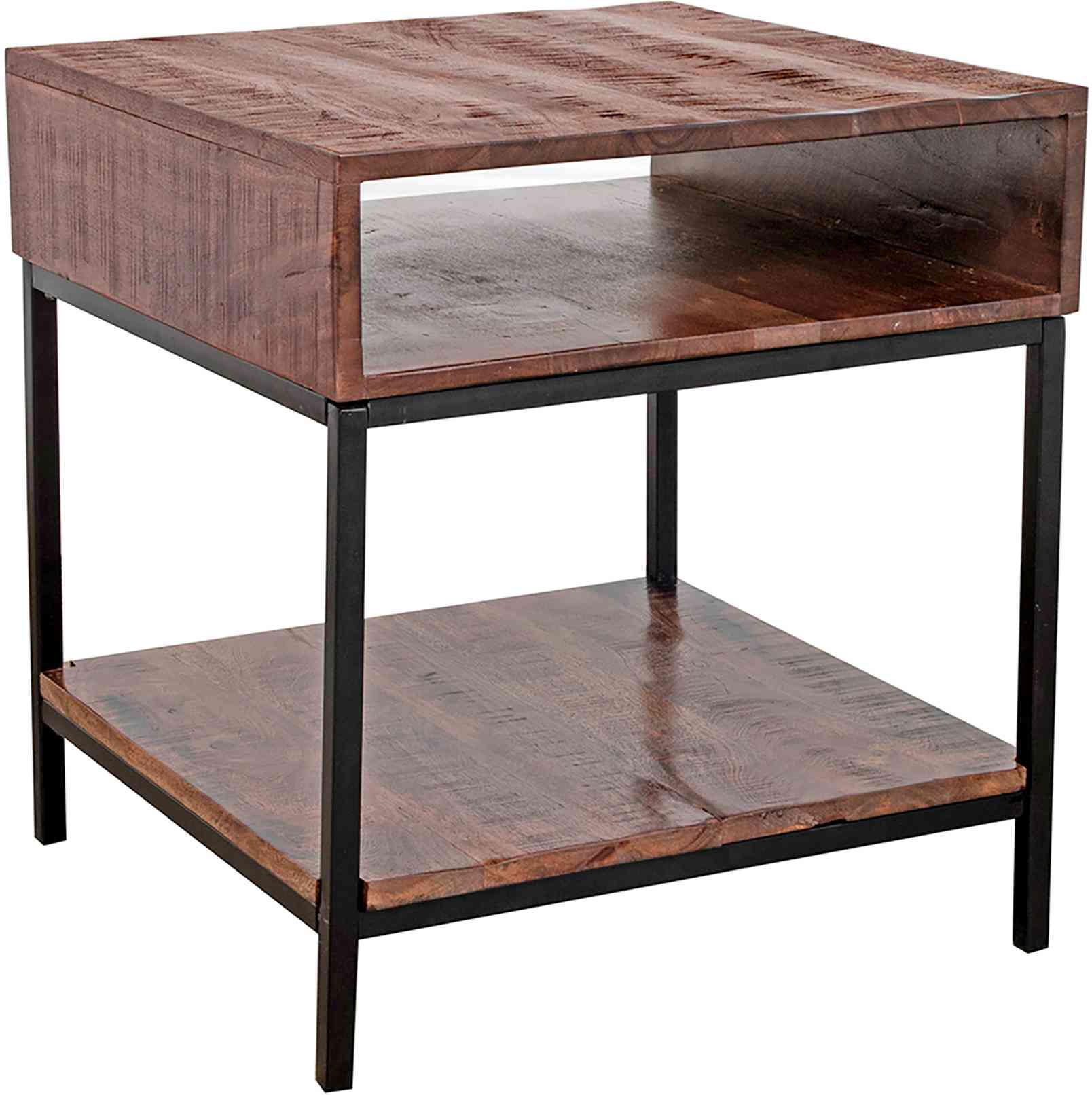 The Lakewood End Table is made from a warm brown stained acacia wood with distressing. Industrial style black legs contrast with the solid wood. Open shelf space provides additional storage.Read More