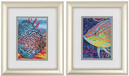 Set of two colorful fish that have been double matted and framed under glass with a soft champagne moulding. A wonderful addition to any room, and a perfect fit for any decor.Read More