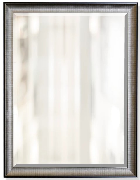 Make your home look bigger and brighter with this wall mirror. Shown in a black and silver finish, and features a beveled frame. This eye-catching piece is a perfect way to refresh your room's look.Read More